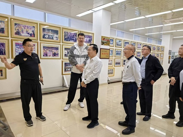 会前,郑建民一行实地考察了广东宏远篮球训练馆和东莞市体育中心。在宏远篮球训练馆,实地了解职业球队智能化训练设施与科学化训练体系;在市体育中心,重点考察了全民健身场馆的规划布局、开放使用情况及群众体育活动开展成效。据悉,广东宏远篮球俱乐部将牵头组建广东全运会男篮成年队,出征2025年第十五届全运会篮球成年组赛事。第十五届全运会篮球(男子成年组)项目将在东莞市体育中心体育馆、东莞篮球中心举行;残特奥会篮球(聋人女子组)项目将在东莞市体育中心体育馆举行。
