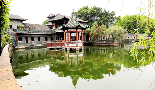 可园正门对出几米地方据说有个荷花池,后来我们挖地基看到了荷花池的地基;